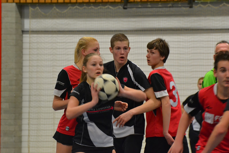 De scheidsrechter was waarschijnlijk op de hoogte van het belang van deze wedstrijd want hij hield de touwtjes wel erg strak. De strafworpen en vrije ballen vielen als rijpe appelen, vooral in de 1e helft. Wel netjes verdeeld over beide ploegen. In de 1e minuut kreeg KCC er al een. Niels miste maar Raoul scoorde uit de rebound. Vier minuten later wist Niels er wèl weg mee en zorgde voor een 2-0 voorsprong. Nadat Koen uit een vrije bal 3-1 had gemaakt kwam DSC weer terug in de wedstrijd door op te halen naar 3-3. We waren toen halverwege de 1e helft. De acties van Jelle werden steeds gevaarlijker en hij liet regelmatig zijn directe tegenstander zijn rug zien. Uit zo’n actie kon Koen weer aanleggen voor de 4-3. DSC gaf niet op en kwam zowaar in de 21e minuut op een voorsprong 4-5. Na een onderschepping van Sophie kon Raoul ongehinderd doorbreken en de 5-5 maken. Jelle zou vlak voor de rust van dichtbij de voorsprong bewerkstelligen. 6-5
